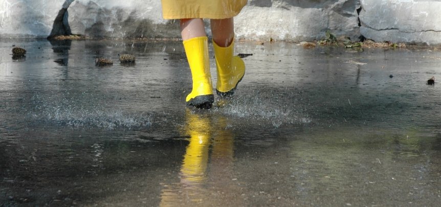 Наступить в лужу и почувствовать, что ноги промокли — радости и веселье сменятся грустью и печалью.